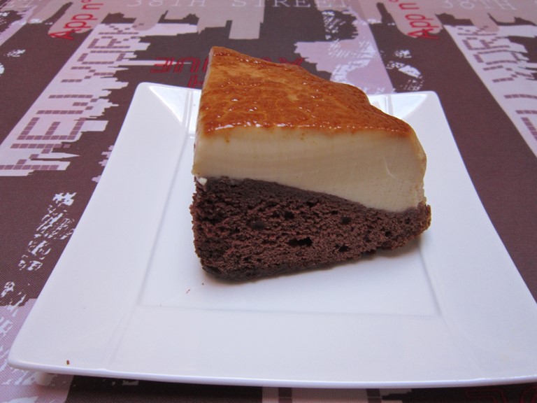 Le caramel est redevenu liquide et la couche de gâteau au chocolat se retrouve en bas.