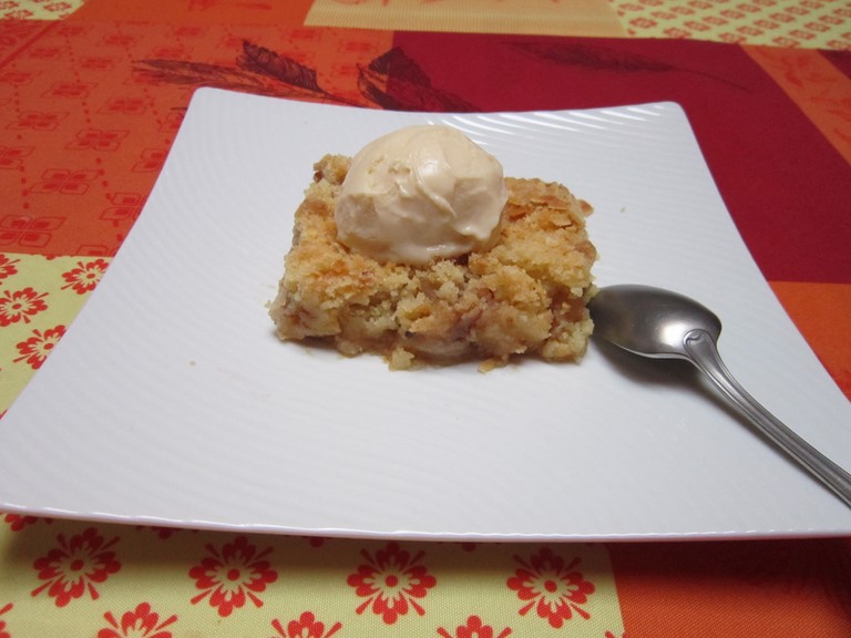 Saupoudrez de cannelle, émietter la pâte, parsemer d'amandes.