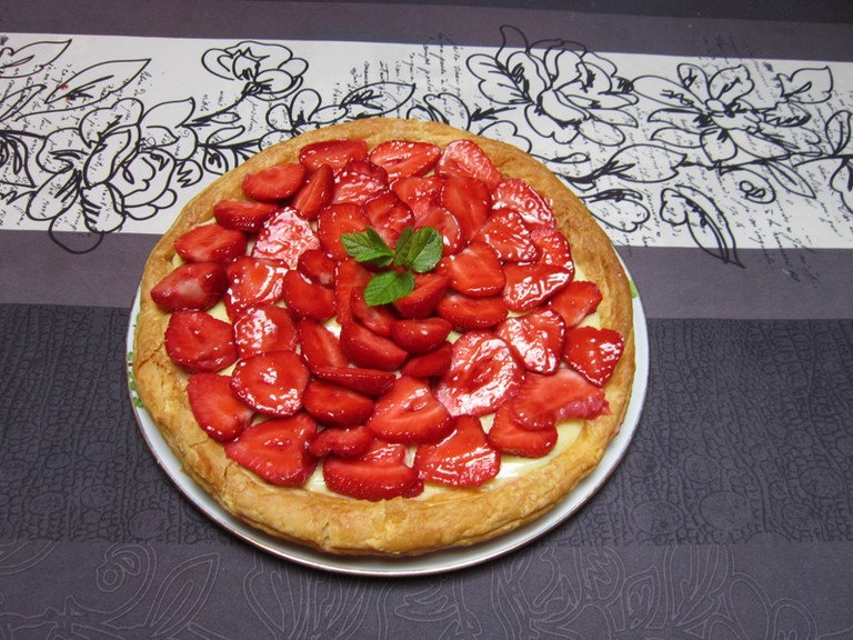 Disposez les fraises sur la crème (coupées les en 2 selon la grosseur).