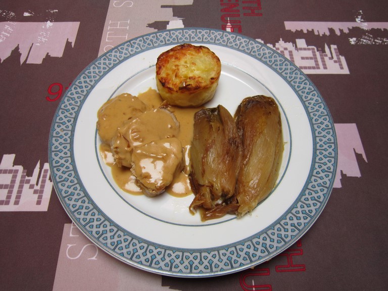 Pour ma part avec des endives braisées et mini-gratins de pommes de terre.