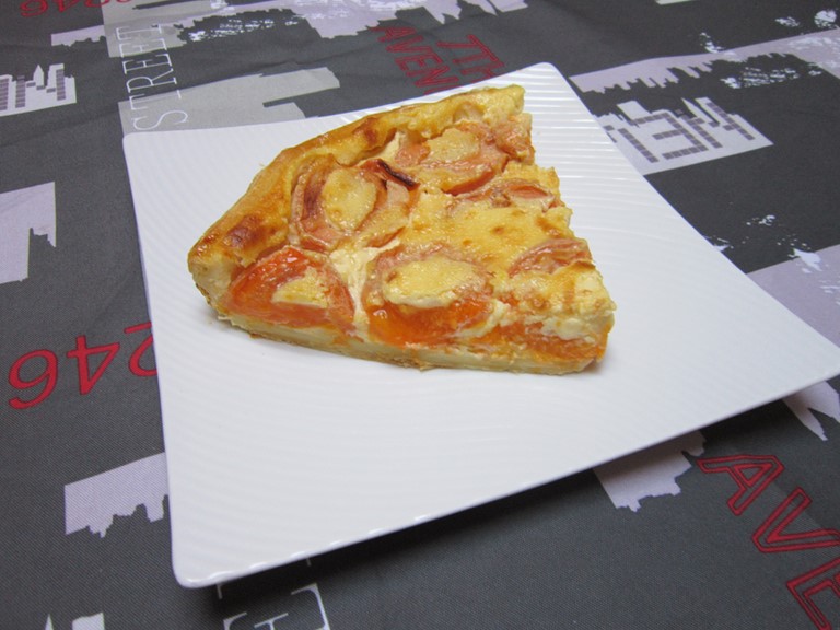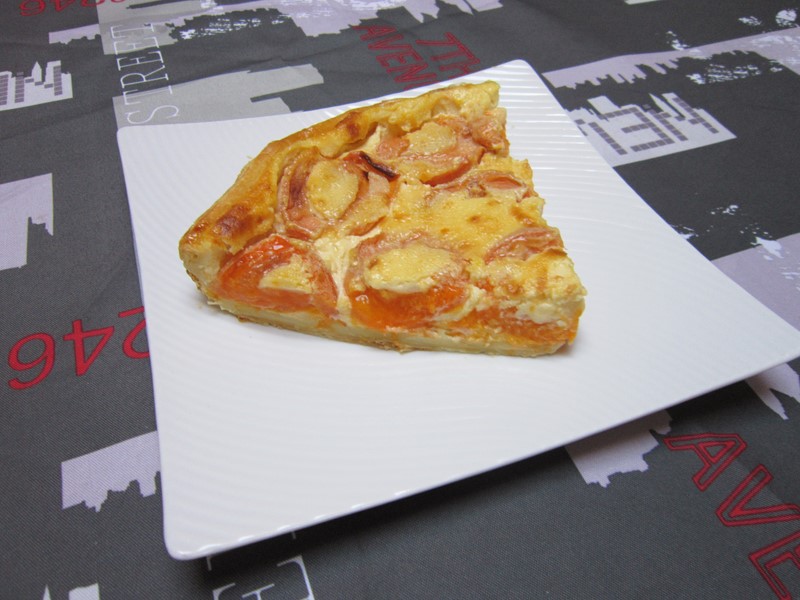 Versez le mélange crémeux sur le fond de tarte et les abricots.