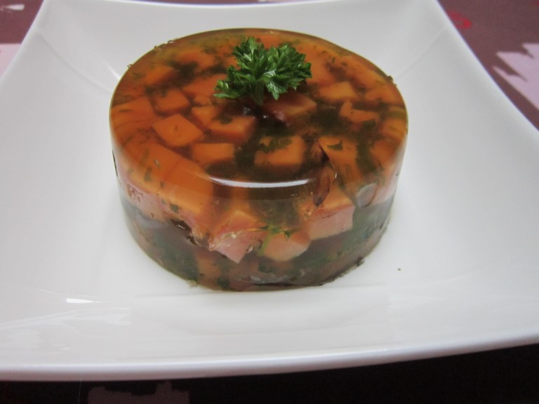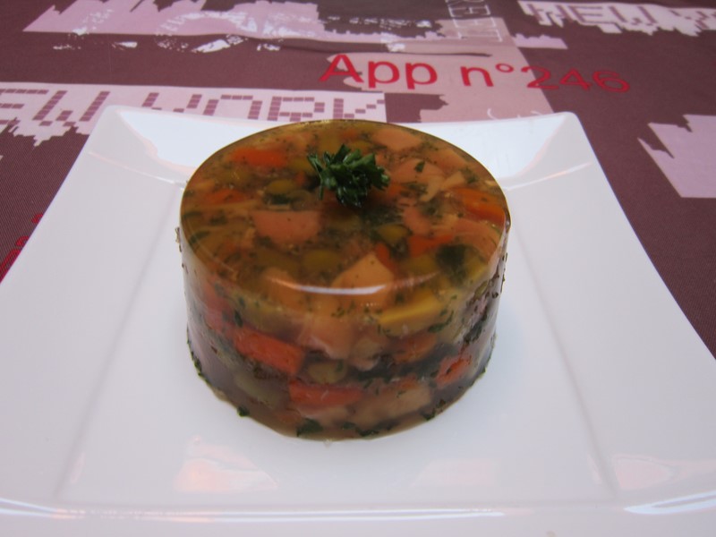 Dans une casserole, préparez la gelée au madère en délayant 2 sachets dans 500ml d'eau.